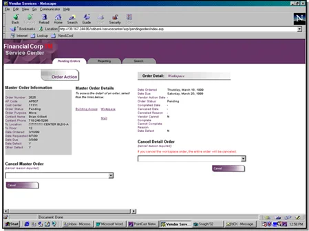- Service Center: This interface allowed the Customer Service team to monitor the vendors' actions on the orders and supplied them with the metrics and reporting necessary to be proactive with the customer.